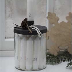 Hvis du ønsker at lave din helt egen unikke lysestager så har vi forskellige stager som du kan bruge og i afsnittet Pynt & dekoration vil du finde en masse fine ting og bånd som du kan pynte med. Vi har runde stager med både smalle og brede kanter rundt om lyset som kan dekoreres. Vi har en kantet kasse med lyseholder på toppen og en skuffe, der kan trækkes ud, så du kan lave en fin dekoration i den. Og de fine cirkler med lyseholder øverst og en rund plade til dekoration nederst finder du også her. Og så kommer vi selvfølgelig ikke uden om de skønne glaskrukker fra Ib Laursen. Nede i glaskrukken kan du pynte med alt lige fra gran, kogler og bånd, til et par små nisser, engle eller andet julepynt, og på låget sidder lyseholderen som du også kan pynte med f. eks. en fin sløjfe og et stykke gran. Vi har dem med låg i mange forskellige farver, og de er især populære til vores kalender bede- & kertelys - 24 lys med hver deres tal på. Se kalenderlysene med tal på HER