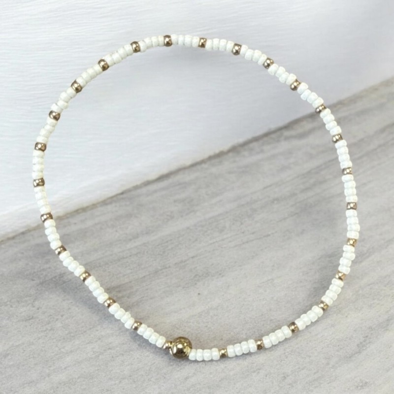 Armbånd fra Friihof + Siig med hvid og guldfarvet perler. Armbåndene sælges ikke som sæt men pr stk.