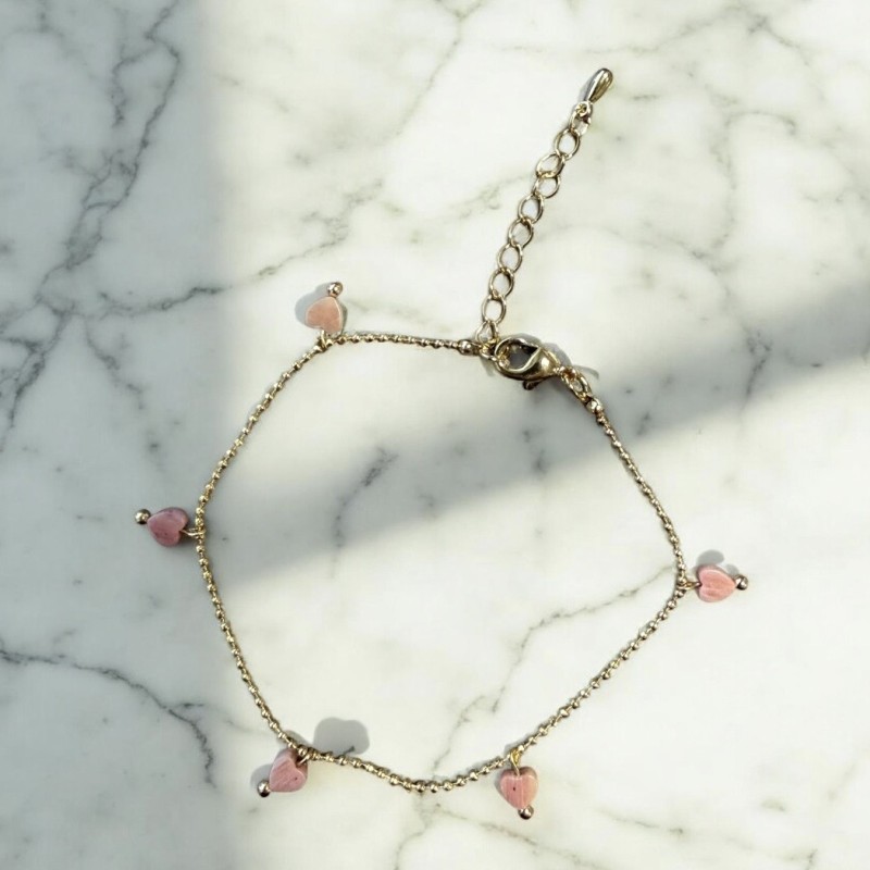 Armbånd - Friihof + Siig guldbelagt "Tiny chain" m/ rosafarvede hjerter