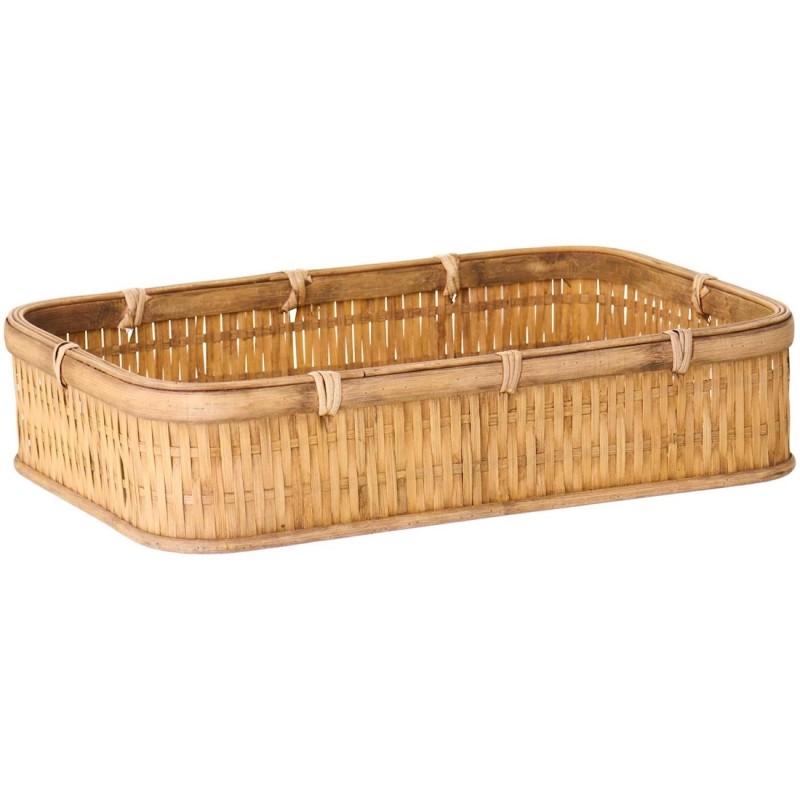 Denne aflange bakke fra Ib Laursen kombinerer naturlig charme med funktionel elegance. Den flettede bambuskant og faste bund giver et solidt udtryk, der passer perfekt til både servering, dekoration eller opbevaring. Bakken bringer en varm og rolig atmosfære ind i dit hjem – ideel til stilfulde stillebens og hverdagsbrug.