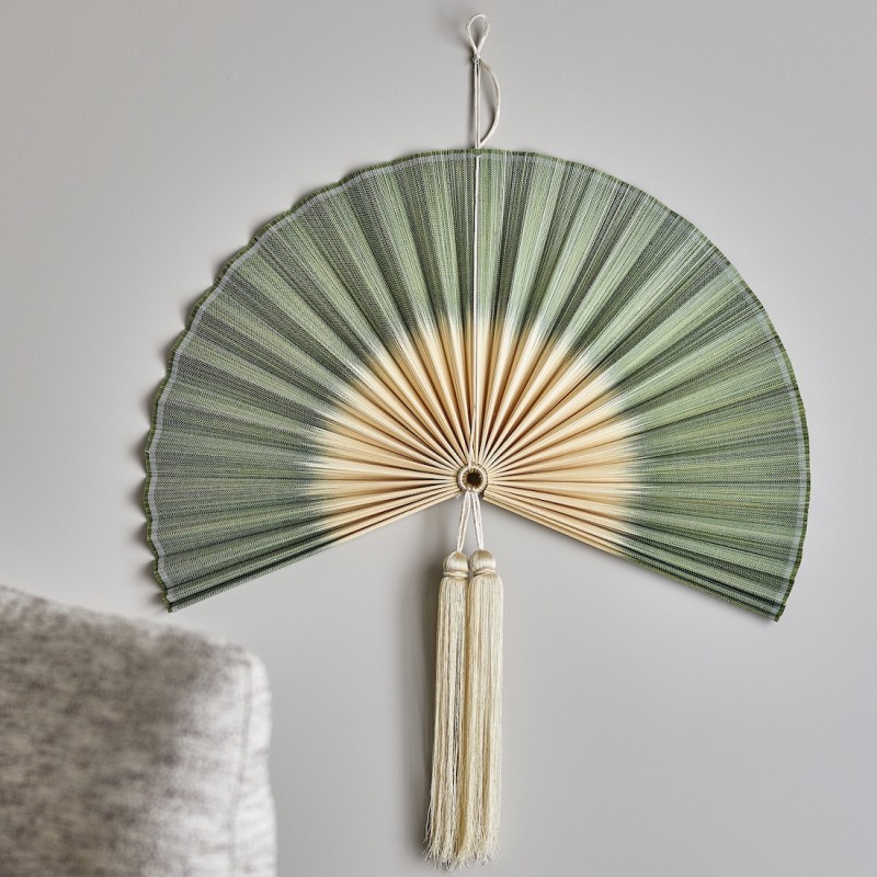 Jaime vægdekoration fra Bloomingville er et smukt og naturligt indslag til din boligindretning. Fremstillet af bambus med grønne folder, der elegant toner ud i en beige midte, skaber den en rolig og harmonisk stemning. Dekorationen måler 70 cm i længden og fuldendes med kvastdetalje samt ophængsløkke. Hvert stykke er unikt pga. naturmaterialer!