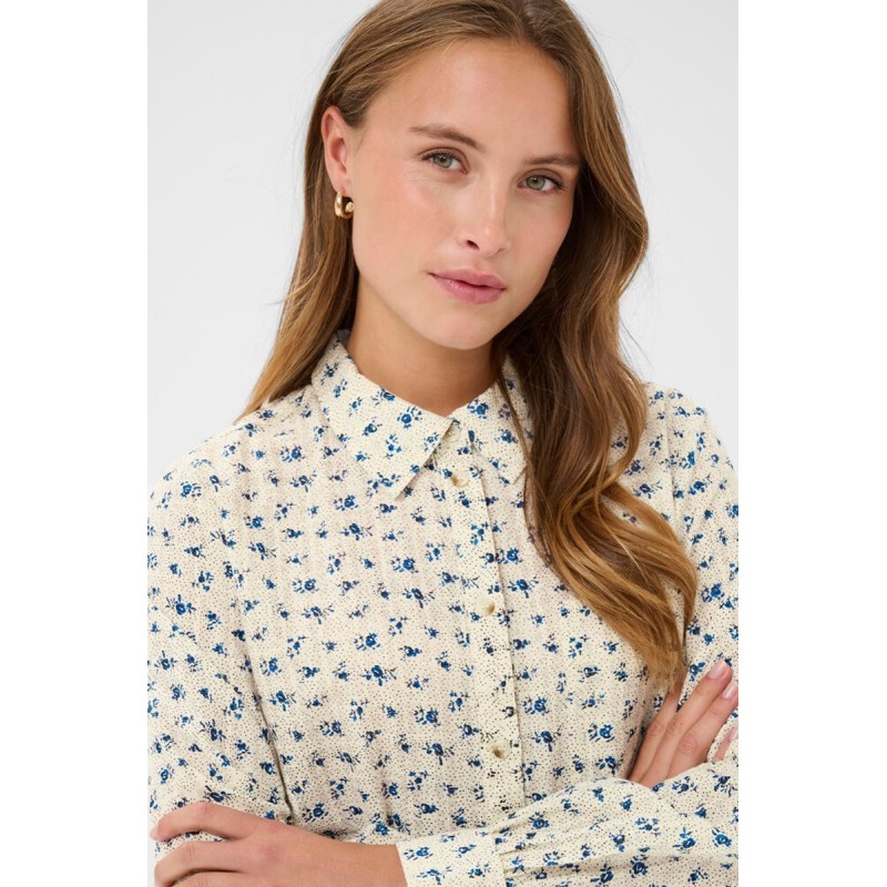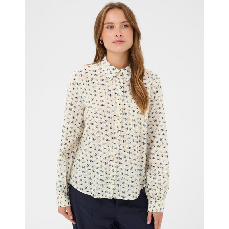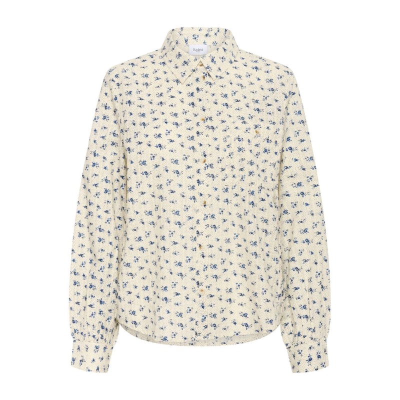 Opdater din garderobe med den feminine skjorte "OmeliaSZ" fra Saint Tropez. Skjorten er i en elegant råhvid nuance prydet med fine blå blomster, der giver et friskt udtryk. Den lette kvalitet gør den behagelig at have på – perfekt til både hverdag og mere formelle lejligheder. Style den med jeans eller nederdel for et fuldendt look.