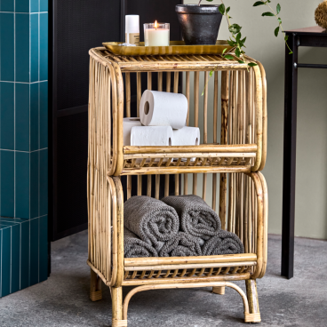 Denne Shelf reol fra House Doctor, der også kan bruges som et sidebord, er mere end bare et møbel. Det er en unik reol, håndlavet af sukkerrør, og prydet med to hylder samt en top som hvorpå du kan stille en bakke og dermed bruge sidebordet i stuen til f. eks. din kaffekop & avis. Reolen er også perfekt på badeværelset til håndklæder, vaskeklude mm.