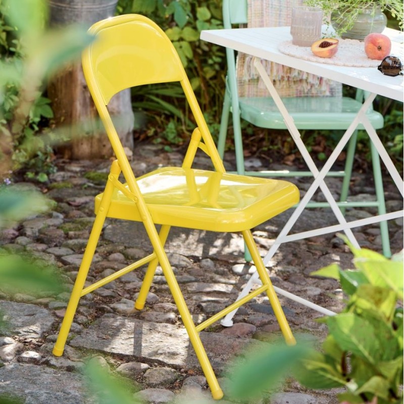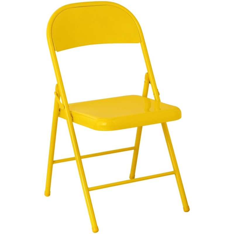 Praktisk og iøjnefaldende klapstol i metal med en flot gul finish, der tilfører liv til enhver indretning. Stolen kan nemt foldes sammen for pladsbesparende opbevaring, perfekt til både hjemmet, festen eller ekstra siddepladser på kontoret. Den fine konstruktion kombinerer funktionalitet med farverig stil.