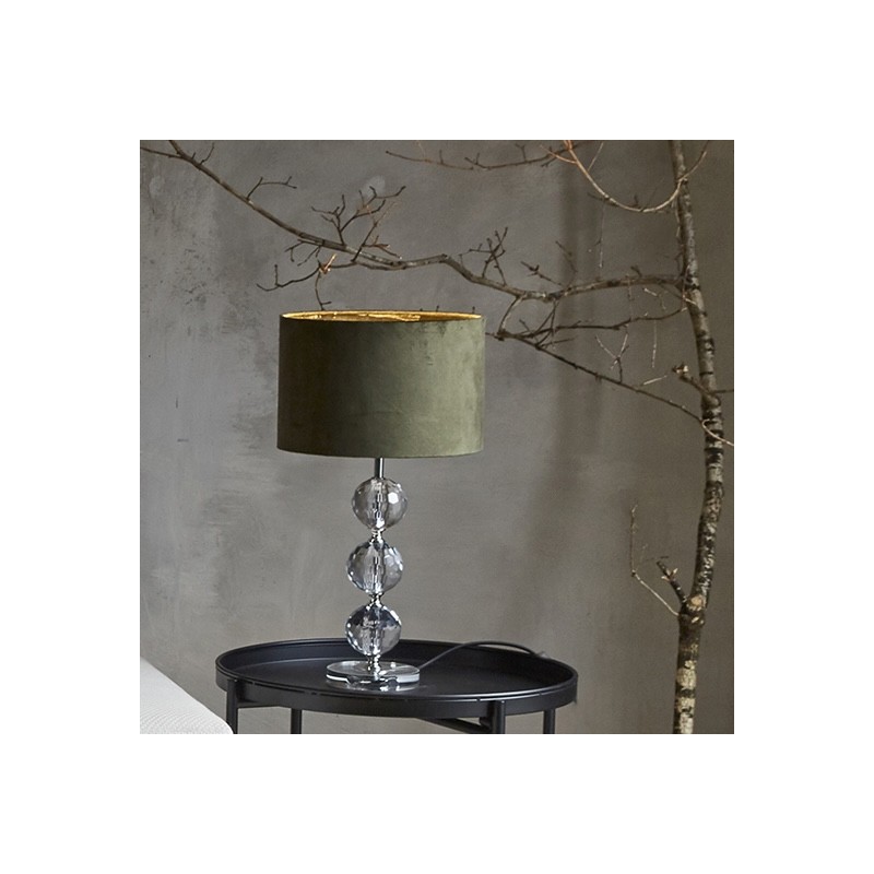 Smuk bordlampe fra Speedtsberg med en elegant fod i klart glas, der giver et krystalagtigt og eksklusivt udtryk. Lampen fuldendes af en stilfuld grøn velourskærm, som tilføjer varme og karakter til indretningen. Med sin højde på 54 cm er den perfekt som dekorativ belysning i stuen eller soveværelset – både funktionel og æstetisk charmende.