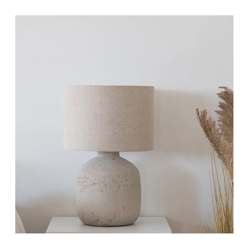 Bordlampen "Billy" fra House Nordic forener moderne design med naturlig charme. Den fine keramik fod i har en unik, struktureret overflade, der giver et rustikt men stadig stilrent udtryk. Den lyse tekstilskærm i naturfarve skaber et behageligt, varmt lys – perfekt til stue, soveværelse eller kontor.