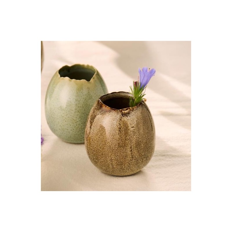 Tilføj nordisk charme til dit hjem med den ægformede vase fra Ib Laursen. Vasen er fremstillet i brun keramik og har et enkelt, stilrent design, der passer perfekt ind i moderne boligindretning. Brug den alene eller kombineret med andre vaser for et personligt udtryk – ideel til både højtider som påske og hyggelige hverdagsarrangementer året rundt.