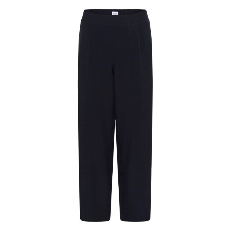 Opdag komfort og stil med de sorte "CelestSZ" bukser fra Saint Tropez. Bukserne har vidde ben, der giver et elegant og afslappet look – perfekt til både hverdag og festlige anledninger. Designet i en flatterende pasform med god bevægelsesfrihed. Bemærk: Modellen er stor i størrelsen, overvej evt. at vælge en mindre størrelse.
