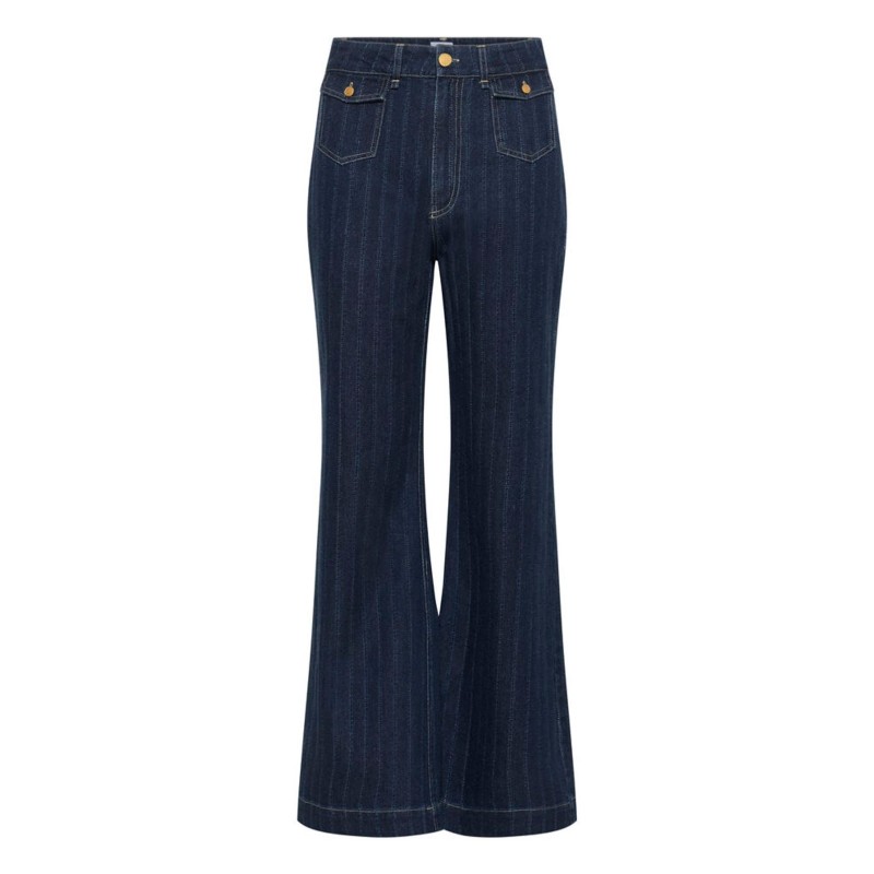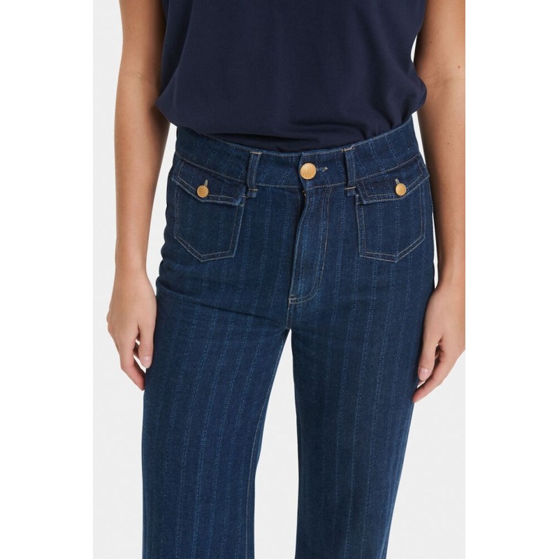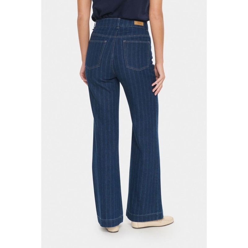 Jeans "OshanaSZ" fra Saint Tropez er stilfulde bukser med trendy svej og diskrete striber i stoffet. Modellen har knaplukkede lommer foran, der tilføjer cool detaljer, samt baglommer for et klassisk look. En moderne fortolkning af den tidløse jeansstil – perfekt til både hverdagsbrug og smart casual outfits.