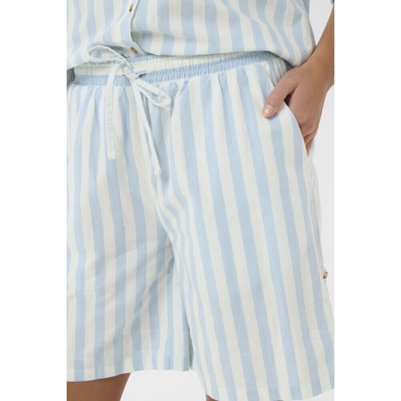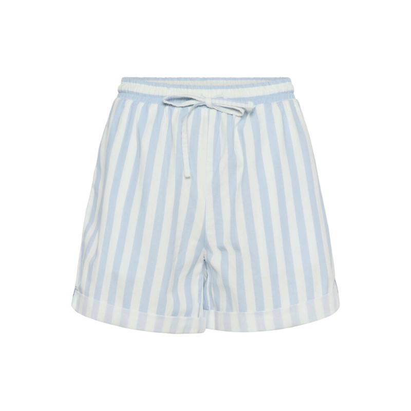 Saint Tropez ZalindaSZ shorts er et afslappet og stilfuldt valg til garderoben. De har en komfortabel elastisk talje med justerbar snøre, opsmøgede ben og et let materiale, der gør dem perfekte til både hverdag og varme dage. Det lyseblå- og hvidstribede design giver et friskt, sommerligt udtryk.
