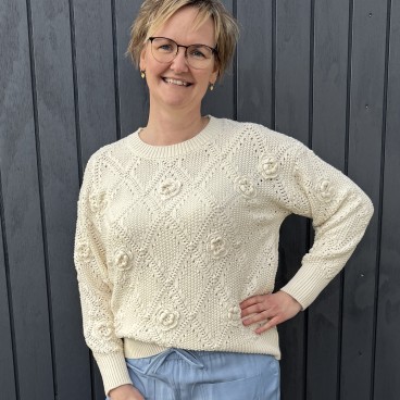 Her er en hyggelig striktrøje fra Costamanis "Arles" serie klar til at holde dig varm. Denne råhvide pullover har smukke strikkede blomster på, der giver trøjen et unikt og feminint touch. Trøjens kvalitet sikrer god komfort hele dagen uanset vejret. Se den også i en mørk army grøn!
