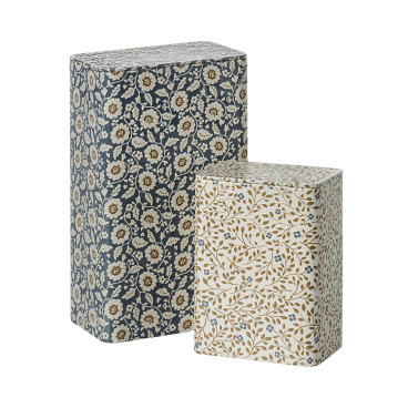 Hvis du er vild med fint og sødt boligtilbehør, vil disse små dåser fra Maileg sikkert falde i din smag. De kommer som et sæt på 2 stk., hver prydet med en delikat blomsterillustration. Skønne til opbevaring af diverse i køkkenet, mindre genstande eller bare for at pynte lidt ekstra på hylden derhjemme.