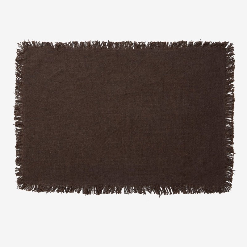 Denne mørkebrune dækkeserviet fra Nordal vil give dig et stilfuldt og komplet bordopsætning. Stofservietten, der bærer navnet 'Leo', charmer med en simplicitet og en & rustik elegant frynsekant som kun kan tilføre din måltid noget særligt. Den er af slidstærkt materiale sikkert for alle slags retter - varme og kolde.
