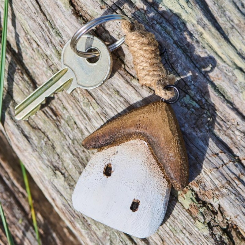 Tilføj et strejf af charme til dine nøgler med denne håndlavede nøglering fra Ib Laursen, formet som et lille hvidt hus med brunt tag. Den er både dekorativ og praktisk – nem at finde i tasken og hyggelig at have ved hånden. Det naturlige design giver et varmt udtryk, der passer perfekt ind i en nordisk stil.