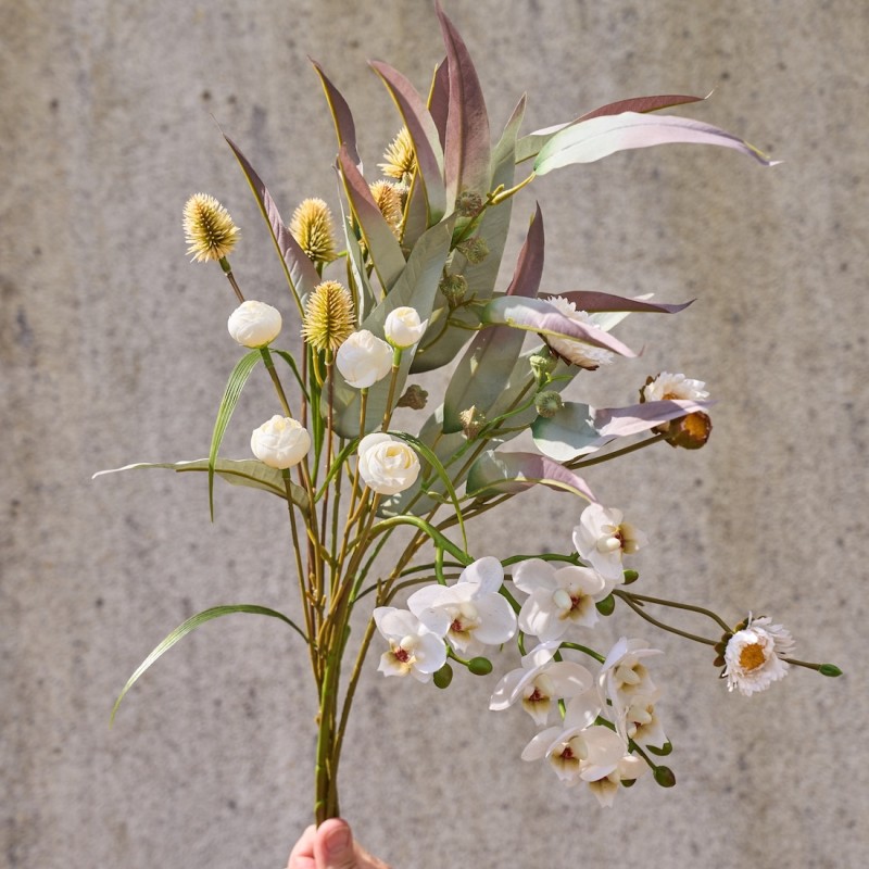Skab en grøn og elegant stemning i dit hjem med denne kunstige aflange eukalyptus-stilk fra Speedtsberg. Med sin imponerende højde på 70 cm er den ideel til at give fylde i buketter eller stå enkeltvis som dekorativt element. Den naturtro finish giver et frisk udtryk – helt uden behov for vedligeholdelse. Perfekt til tidløs indretning året rundt.