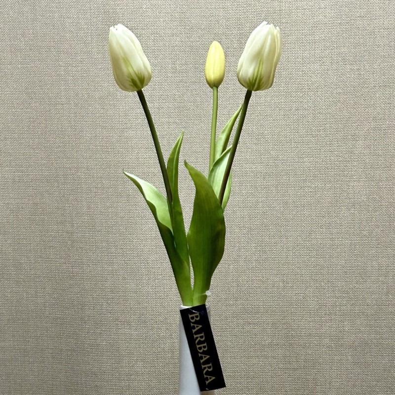 Tulipan bundt á 3 stk. hvid, kunstig - Barbara H:41 cm du får et fint lille bundt som du kan splitte op eller mikse med flere og laver til en buket