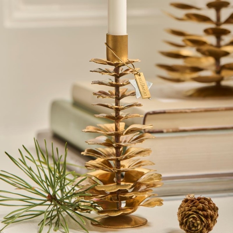 Skab hyggelig julestemning med denne smukke kogleformede kertelys-stage "Gloria" fra Ib Laursen. Stagen er fremstillet i en smuk messing. Perfekt til det festlige julebord – brug den alene eller kombiner flere for et stemningsfuldt udtryk. Fås også i varianter til både bedelys og kronelys.