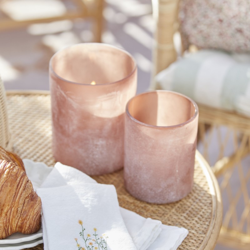 Lækker mundblæst fyrfadsstage lavet af glas, fra Ib Laursen. Fyrfadsstagen har en flot rosa farve, og ved at påføre af soda er det "frostede" udseende fremkommet - og det gir et rigtig hyggeligt lys:-) Fås i flere farver og størrelser - mål & udseende vil variere, hvilket gør hver enkelt stage unik.
