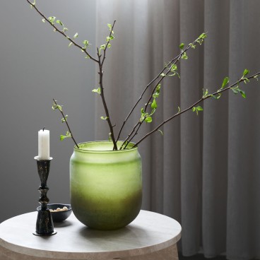 Skab en hyggelig og afslappende stemning med denne Dess vase eller hurricane fra House Doctor. Den er fremstillet af mundblæst glas, hvilket giver den et unikt udseende. Det matte ydre, sammen med den glatte inderside, skaber en kontrast mellem det hyggelige og stil. Fyrfadsstagen har en rund bund, med står dog stabilt på bordet:-)