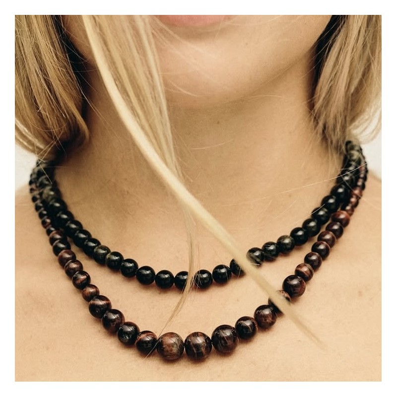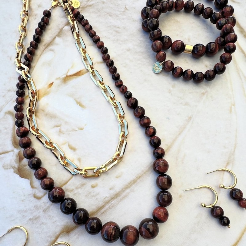 Halskæde - Friihof + Siig - m/ perler "Red tiger eye" - Længde: 44 + 1 cm forlænger stykke