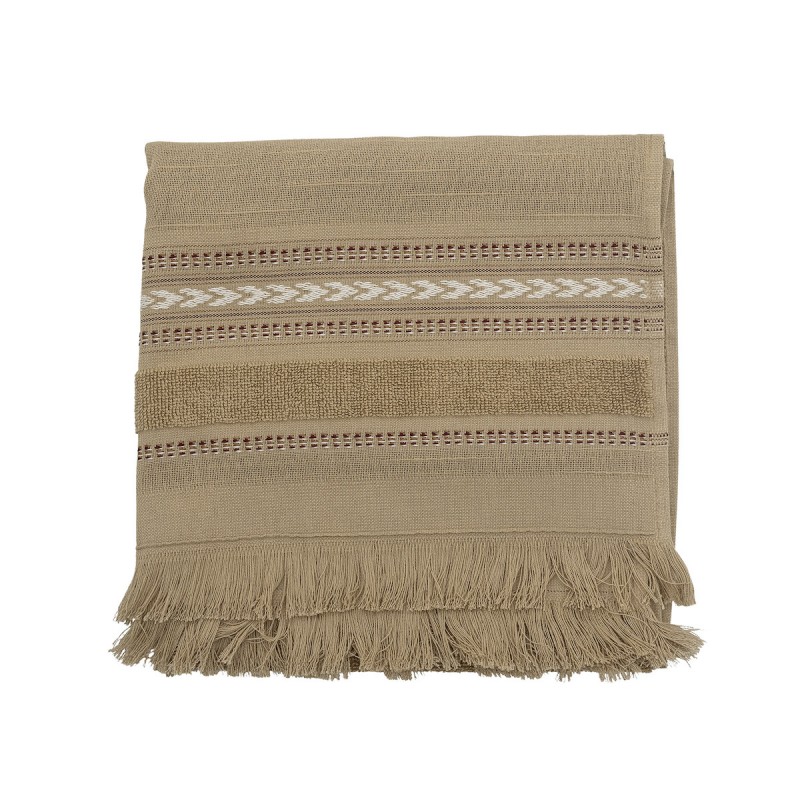 Lækkert håndklæde med fryser i en skøn støvet brun farve, lidt over i beige fra Bloomingville. Håndklædet er lavet af bomuld i en blanding af hammam og frotté, og har en rigtig god absorberingsevne og tørrer hurtigt. Håndklæderne har en masse smukke detaljer og så ser de bare lækre ud på badeværelset:-) Fås i flere farver.