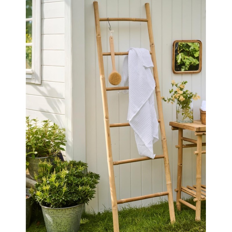 Skab en naturlig og afslappet stemning med denne dekorative bambusstige fra Ib Laursen. Med sin højde på 180 cm og smukke, ubehandlede finish er stigen både praktisk og stilfuld. Brug den til at hænge håndklæder, plaider eller tøj op – perfekt som funktionel dekoration i badeværelset, soveværelset eller entréen.