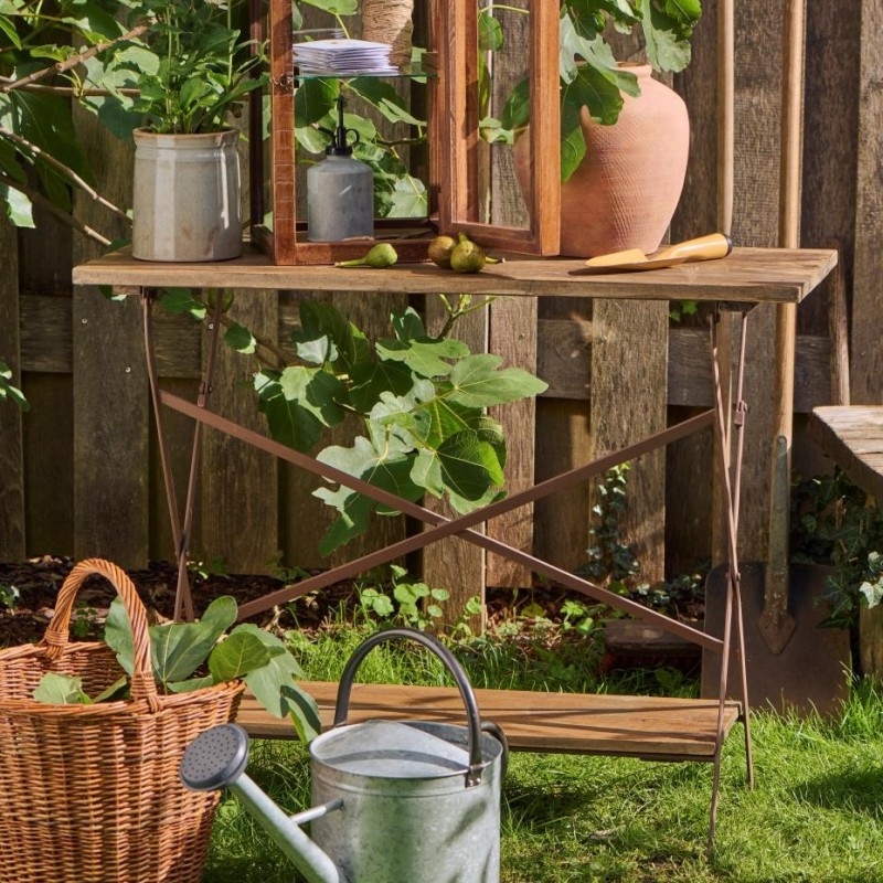 Dette hyggelige bord fra Ib Laursen kombinerer funktionalitet og charme med sin smukke træbordplade, praktiske hylde og robuste metalben. Bordet er foldbart, hvilket gør det let at opbevare eller flytte efter behov – perfekt til både små rum og fleksible indretninger. Et alsidigt møbel med et rustikt udtryk, til både ude og inde!