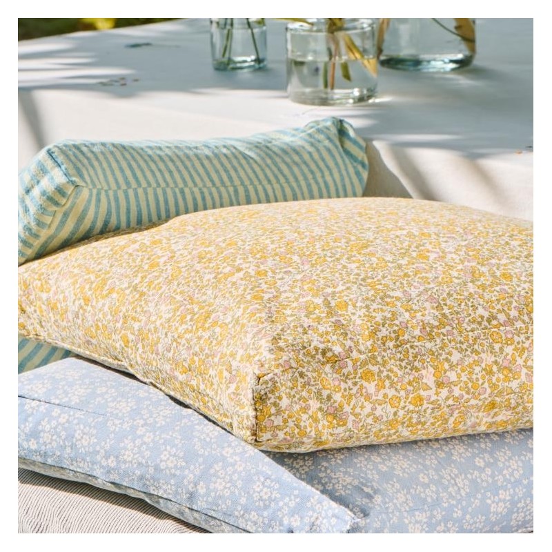 Opfrisk din indretning med hyndebetrækket Rita fra Ib Laursen. Betrækket har et fint blomstermønster i naturlige nuancer af gul, grøn og rosa på en naturfarvet bund. Fremstillet i bomuld som giver både komfort og charme til boligen eller haven, perfekt til at skabe en hyggelig stemning året rundt.