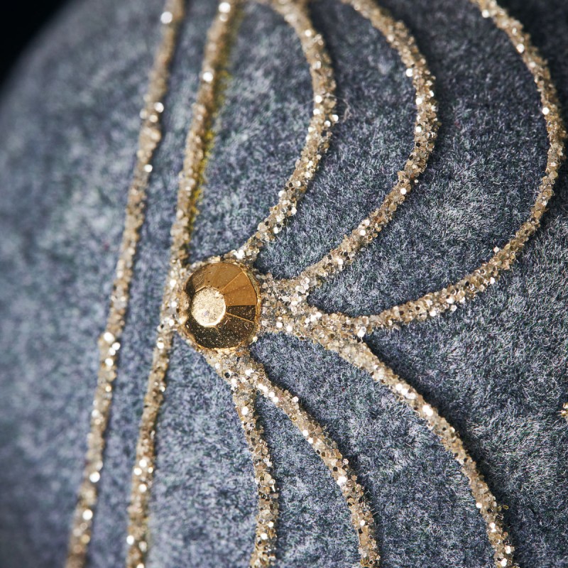House Doctor har designet denne skønne julekugle der bare er wauw!! Glaskuglen er dækket med fin velour i en flot blågrøn farve, og herpå er der lavet det fineste glimmer mønster og påsat pailletter. Hæng flere af dem på dit juletræ - eller lav en dekoration i vinduet eller på en gren. Julekuglerne fås i flere farver og størrelser.