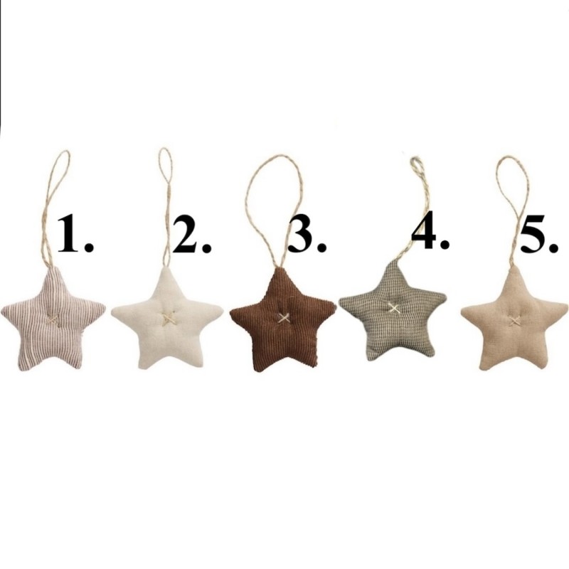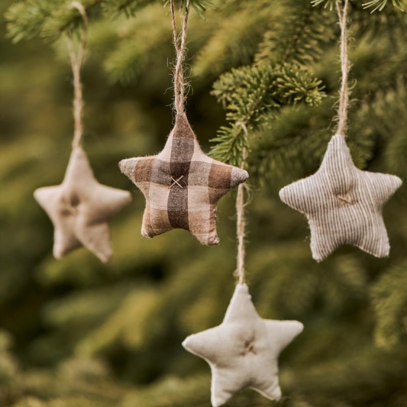 Skab hyggelig stemning med disse smukke stjerner til ophæng fra Ib Laursen. De fås i fem forskellige designs og byder på et unikt miks af tern, striber, fløjl og ensfarvede tekstiler i varme brune og naturlige nuancer. Perfekte som julepynt eller dekorativt element hele året rundt – kombiner dem for et personligt udtryk!