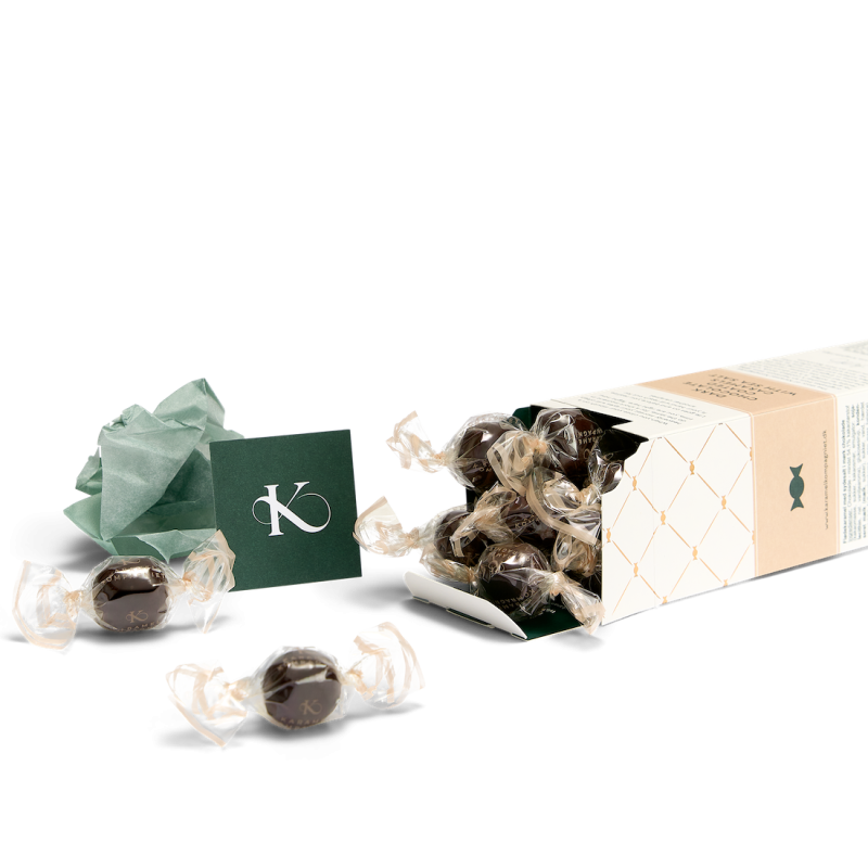 Nyd en udsøgt smagsoplevelse med karamelkugler med havsalt og mørk chokolade fra Karamel Kompagniet. Sprøde flager af Læsø Sydesalt æltes ind i blød, gylden karamel, som formes til små kugler og overtrækkes med intens mørk chokolade. Kombinationen af salt, sødt og bittert skaber den perfekte balance – en lækkerbisken for enhver feinschmecker.