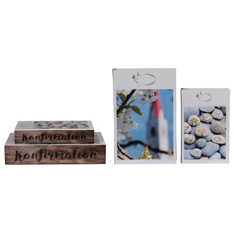 Opbevaringsæske "Konfirmation" fra Speedtsberg – en stilfuld og dekorativ løsning til at pakke gaver ind eller gemme minder for den kommende konfirmand. Æsken fås i både lille og stor størrelse, så du kan vælge den variant, der passer bedst til dit behov. Ideel som sangskjuler eller personlig gaveemballage – kun fantasien sætter grænser!