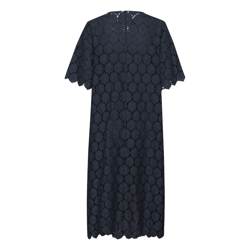 Få et feminint og afslappet look med vores kjole "ZojaSZ" fra Saint Tropez. Denne fine sorte kjole er lavet af et fint mønsteret stof, der giver liv til det helt enkle design. Kjolen har bindebånd øverst og kommer også komplet med en underkjole for ekstra dækken.