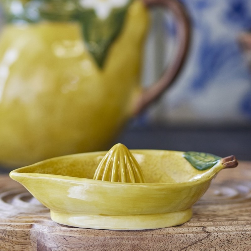 "Limone" citronpresser fra Bloomingville indfanger den friske essens af citrusfrugter. Citronpresseren har form som en citron, med sin smukke gule farve og er fremstillet i stentøj. Brug den i madlavningen eller til morgen citron!