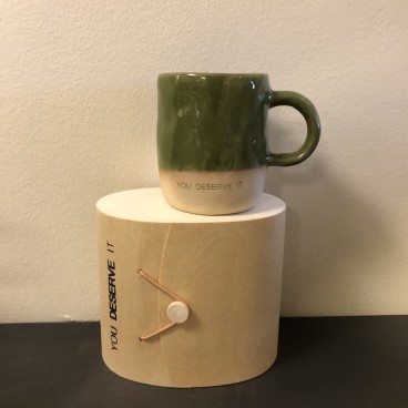 Grønt og natur farvet krus med hank, Neo fra Bloomingville, har et super hyggeligt design og udseende, med teksten: "You deserve it". Det håndlavede krus leveres i en fin spånæske, og er derfor ideel som gaveide. Find din indre ro ved at nyde din varme drik i dette skønne krus:-)