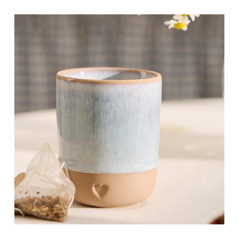 Dette er et fint og rustikt krus fra Ib Laursen. Kruset, som mangler en traditionel hank, har en flot mat brun bund farve der går hånd i hånd med den lyseblå glasering - inspireret af naturens egne nuancer. Perfekt til hyggelige hverdagsstunder eller når du vil servere en kop kaffe for dine gæster!