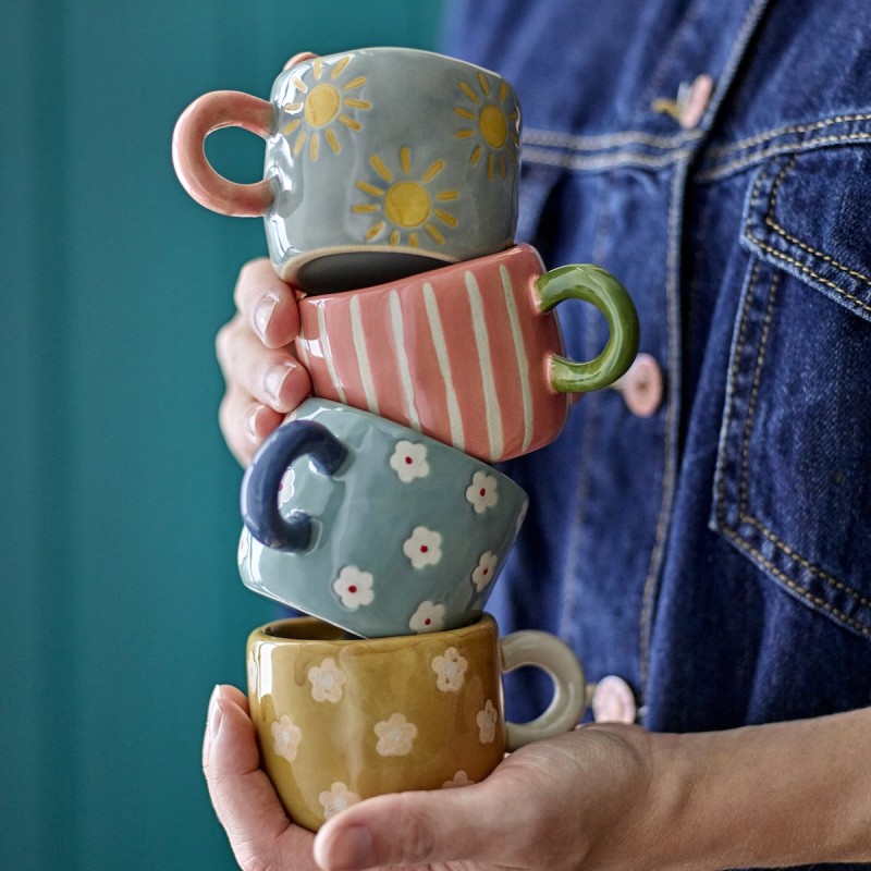 Kop Nini fra Bloomingville er et sæt med 4 små kopper i stentøj, dekoreret med håndmalede mønstre i flere farver. Med en størrelse på 110 ml passer de perfekt til espresso eller små serveringer. De legende detaljer skaber et personligt udtryk, og da hver kop er håndmalet, får du fire helt unikke favoritter.