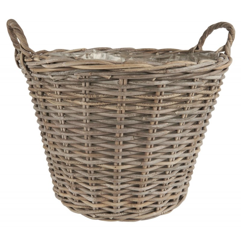 Kurv rattan med plast fra Ib Laursen. Kurven er lavet af rattan med plast indvendigt, så den er fantastisk at plante store grønne planter i inde og oliventræer, buske og grantræer i udendørs. Kurven er med to hanke og lavet i en super god kvalitet; se den også i lille og mellem, se længere nede