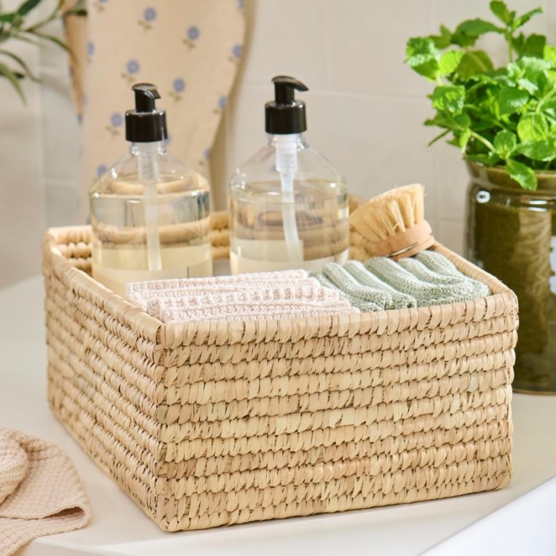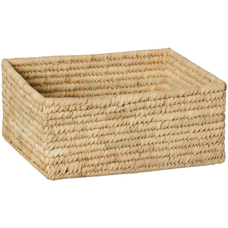 Denne håndlavede aflange kurv fra Ib Laursen er fremstillet af naturligt søgræs og tilføjer et varmt, organisk præg til din indretning. Med sin praktiske størrelse egner den sig perfekt til småopbevaring af fx tekstiler, badeartikler eller køkkenudstyr. Brug den i skabet, på hylden eller som dekorativ organiseringsløsning i hjemmets rum.