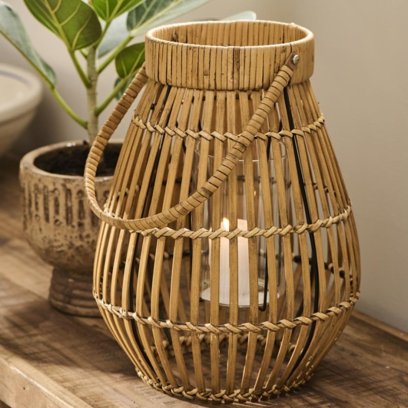 Her er den elegante lygte fra Ib Laursen. Denne smukke lanterne har en højde på 31 cm og kommer med både glasindsats og praktisk hank, så du kan flytte rundt på den. Det smukke miks af bambus og rattan skaber et tidløst look, der let passer ind i de fleste stilarter - hvad end det er til huset eller lejligheden!