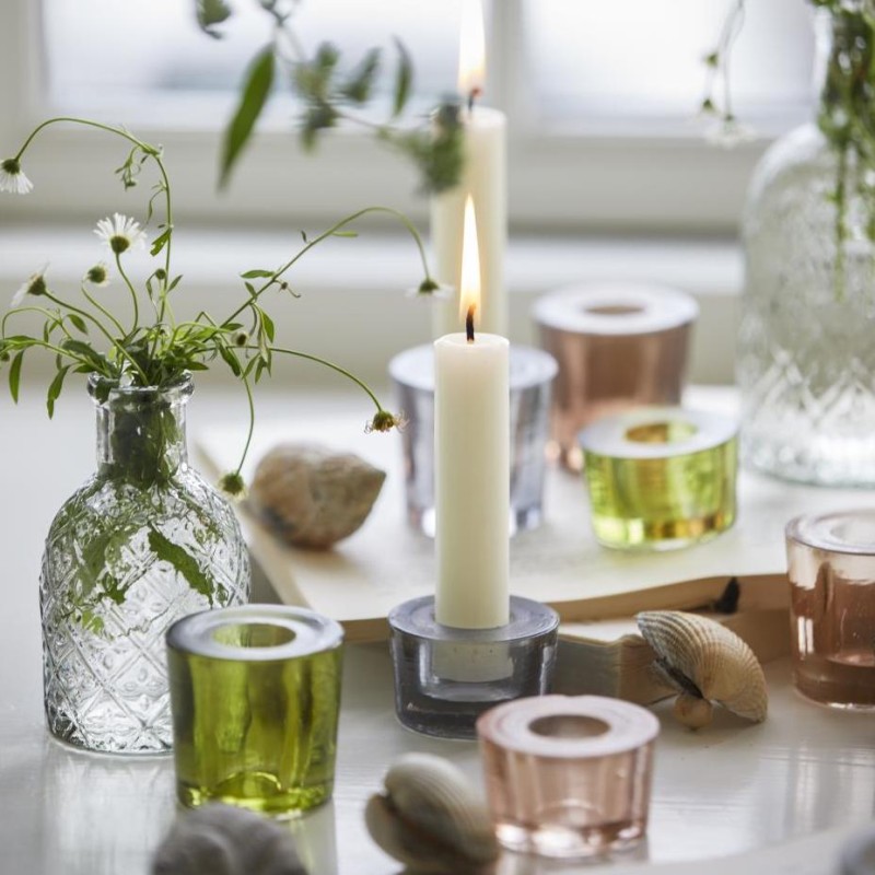 Fin rund stage af mundblæst glas, Vera høj fra Ib Laursen. Stagerne fås i 6 flotte farver, vælg mellem 1: rosa, 2: klar, 3: grøn, 4: lys gul, 5: grå & 6: støvet brun. De fås også i en lav model. Brug flere af stagerne sammen i din borddækning. Stagerne passer til vores kronelys & bedelys som du finder HER