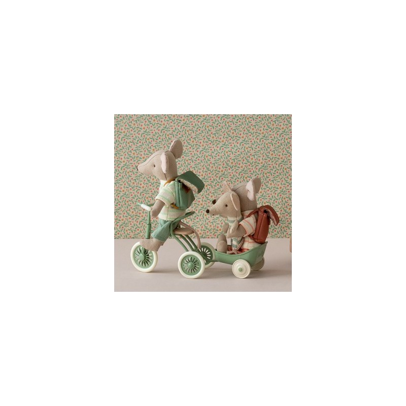 Kom og se vores søde ladvogn til cykel musens cykel. Denne grønne Maileg-ladvogn er ideel som en lille gaveide til storesøster eller storebror musen. Den har et flot design, der får børns fantasi i gang med leg og eventyr. Se den i flere farver og også den fine cykel i samme farve