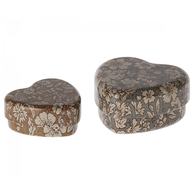 Er Står du også mangler en lille æske til pillerne på farten eller til øreringene? Så vil disse hjerteformede æsker fra Maileg, virkelig falde i din smag. Æskerne kommer i to forskellige farver pyntet med blomster, er utrolig dekorative at have liggende fremme hvor som helst og ellers lige til at ta med i tasken. Du får et sæt med en lille og stor æske.