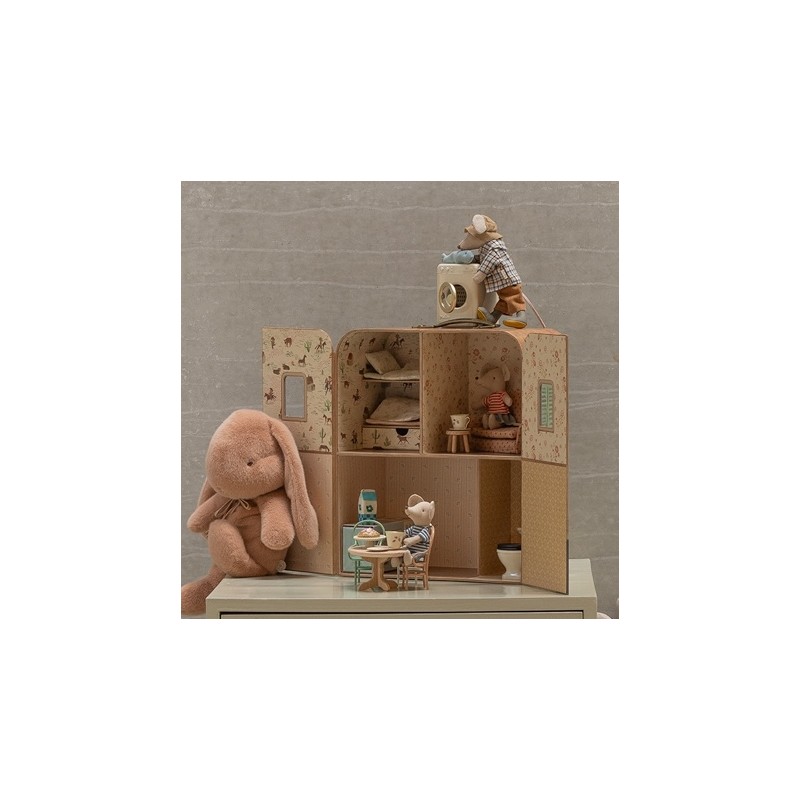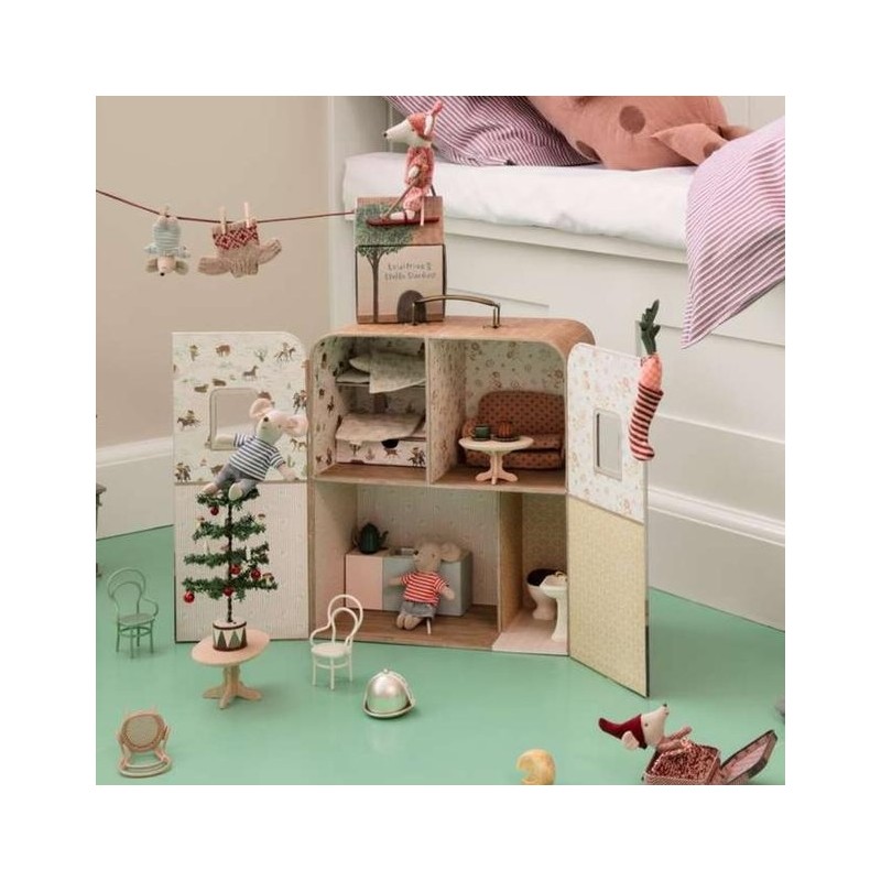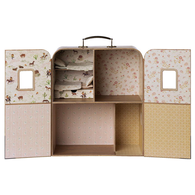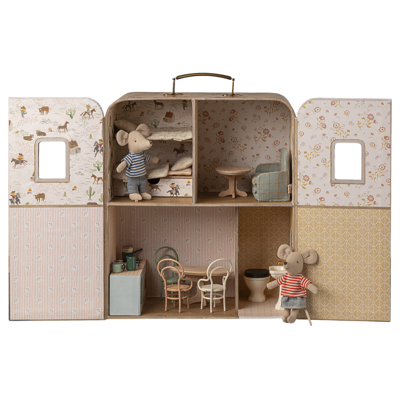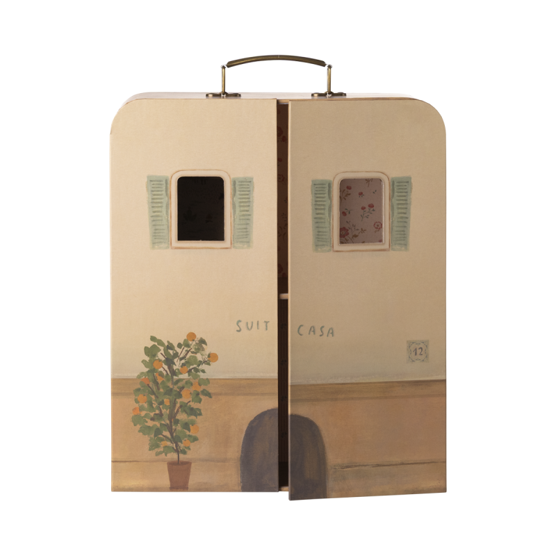 SuitCasa til lillesøster og lillebror mus fra Maileg er et charmerende, transportabelt dukkehus i perfekt størrelse til de små mus. Huset leveres med to sæt blødt sengetøj, så dine Maileg-venner kan putte sig godt. Indretningen kan udvides med ekstra møbler (købes separat), hvilket gør legen endnu sjovere og mere fantasifuld for børn i alle aldre.