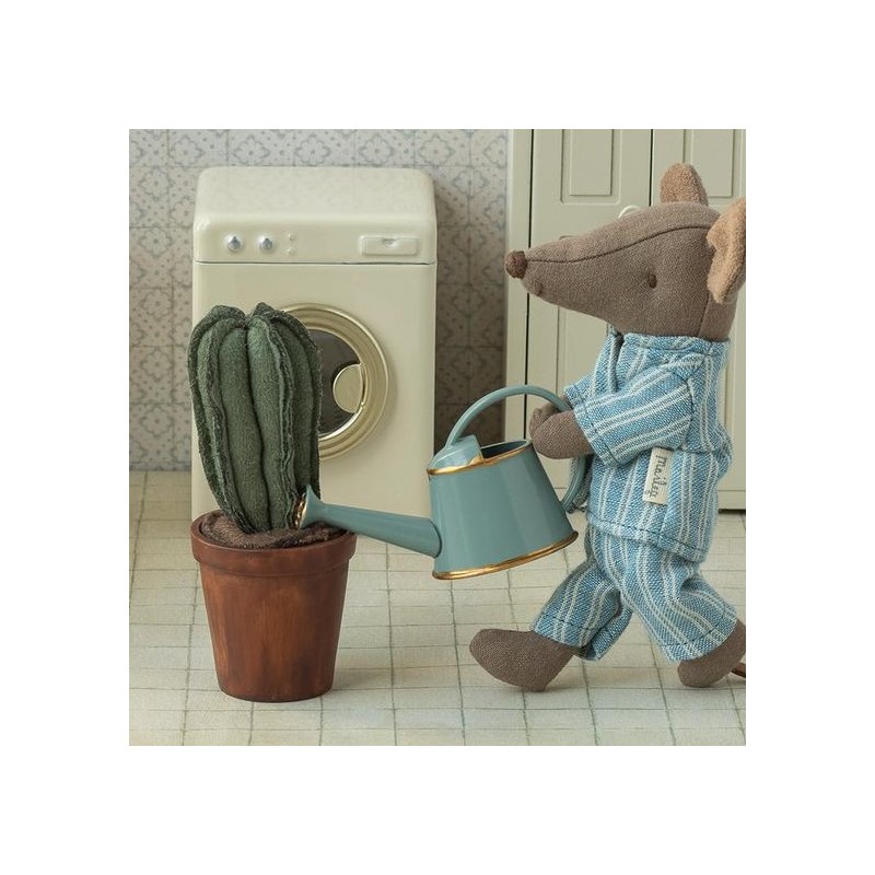 Bring liv og charme til dukkehuset med Mailegs miniature kaktus i krukke. Den fine stofkaktus leveres med "jord" af stof for et virkelighedstro udtryk, som pynter perfekt i små rum. En dekorativ detalje, der skaber hygge og personlighed – helt uden behov for pasning! Husk den matchende vandkande for at fuldende looket.