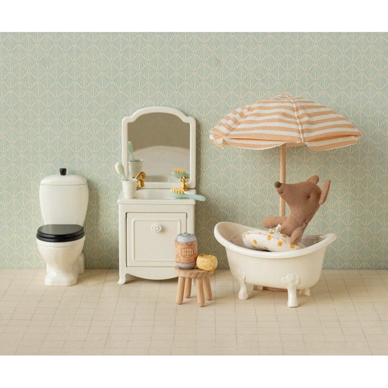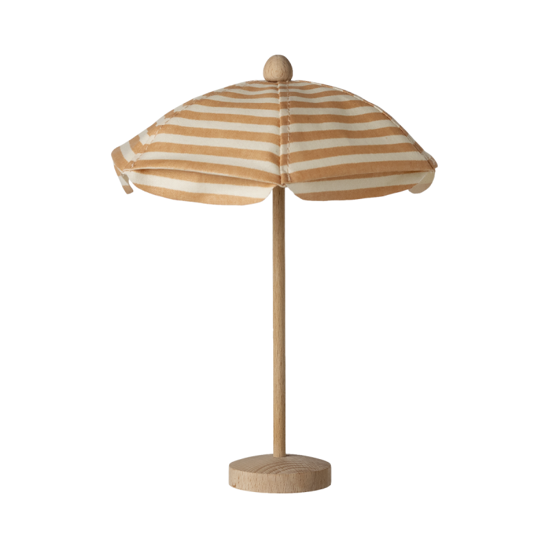 Maileg strandparasol til mus i lys coral med hvide striber giver musefamilien et hyggeligt sted i skyggen på stranden. Den charmerende parasol er perfekt afstemt til Mailegs små figurer og lægger op til leg, fantasi og nye historier om solrige dage ved vandet.