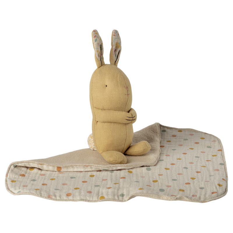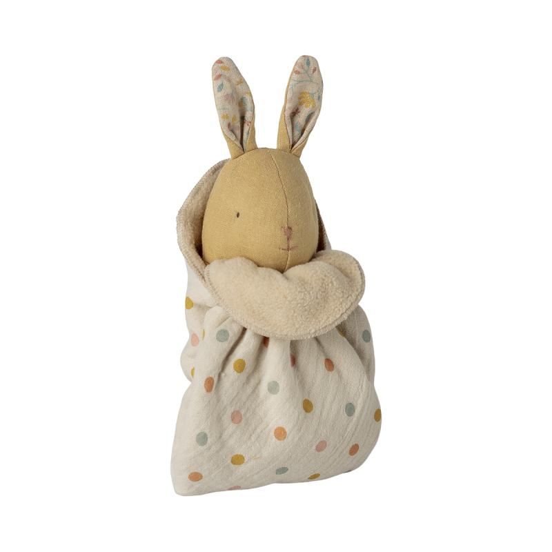 Maileg Lullaby Friends kanin i cremegul kommer svøbt i en blød nusseklud og er skabt til de allermindste. Gavesættet er lavet af fine Maileg-materialer, som små hænder elsker at røre ved og holde om. En sød og tryg babygave med et charmerende udtryk.
