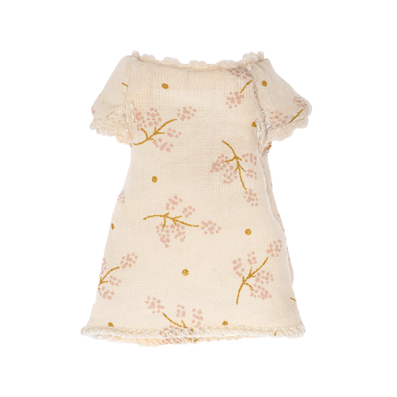 Gør sengetiden sødere med Mailegs natkjole til lillesøster mus! Denne charmerende natkjole er designet i en fin råhvid farve med små blomster og komfortabelt stof. Det vil helt sikkert give alle de små legekammerater den perfekte hvile efter en lang dag fuld af leg. Lav dine børns godnat-ritualer endnu mere magiske og interessante. Se mere til Maileg mus