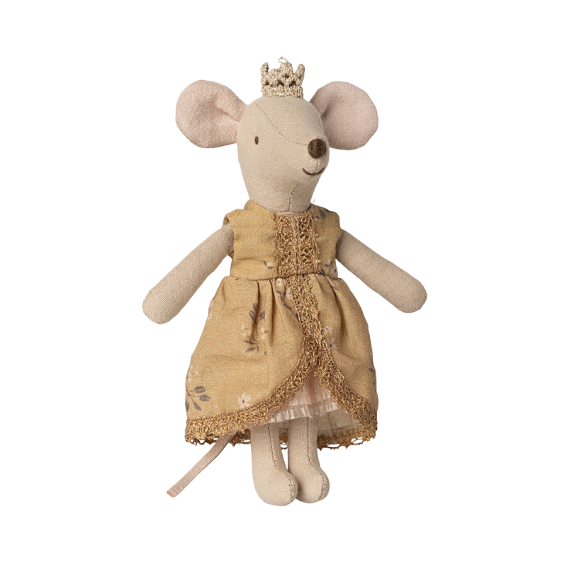 Træd ind i et eventyr med denne charmerende prinsessemus fra Maileg. Musen er storesøsterstørrelse og iført en smuk karry-guldkjole samt en fin krone – lige klar til kongeligt bal på slottet. Med sine fine detaljer passer hun perfekt sammen med resten af Mailegs magiske univers, især det fortryllende slot.