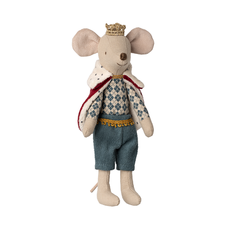 Konge mus med krone fra Maileg i størrelsen Far er en charmerende figur, der bringer magi og eventyr ind på børneværelset. Med sin flotte kongekrone og elegante kappe er han klar til at styre sit slot med stil. Musen passer perfekt sammen med Mailegs slotstilbehør og inviterer til fantasifuld leg i kongelige rammer – et must-have for små royale!